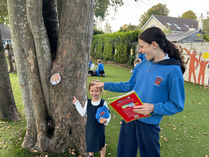 Autumn is our theme in Junior Infants Hazel this month 🍂 We have been very busy learning all about the animals that hibernate during this season. We also learned lots of facts about bears around the world and during the week Junior Infants Hazel read the story ‘We’re Going on a Bear Hunt’ by Michael Rosen. After reading the story, we received a special letter which Ms Harper delivered to our class. The letter was from the bear in the story who invited us to go on our very own bear hunt on the school grounds. Our 6th class buddies kindly helped us to find the bears. Take a look at some of the photos from our bear hunt 🐻
