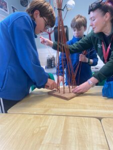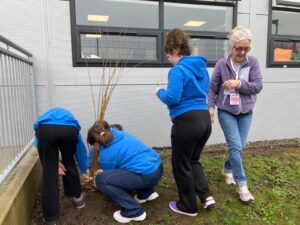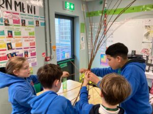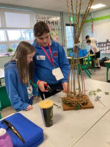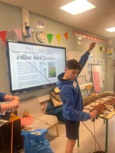 This afternoon we were making bird feeders. We were making them out of willow branches. Some kids brought their bird feeders home and others put them in the school garden.