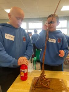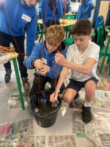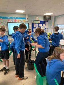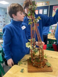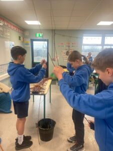 We wet the branches, so they don’t snap and we twisted and decorated them into beautiful bird feeders. Huge thank you to Kelly from Heritage in Schools who showed us how to make them. We enjoyed it so much and now you could make them at home. Keep an eye out for our bird feeders hanging from trees in school!