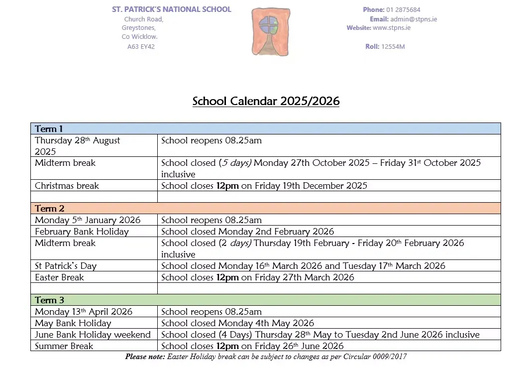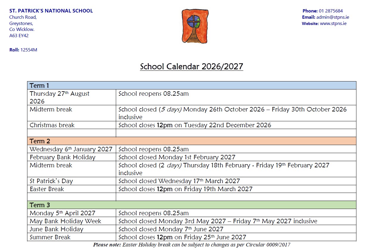 Easter Holiday break can be subject to changes as per Circular 0009/2017