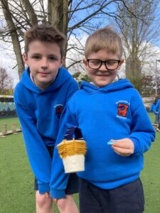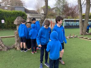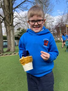 5th Larch made baskets for their Senior Infants Birch buddies and enjoyed an exciting Easter egg hunt together! 🥚✨