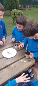 4th Class and their 1st Class buddies enjoyed planting sunflowers in the garden, teamwork in full bloom! 🌱😊
