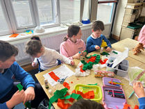 Junior Infants Willow wrapped up Seachtain na Gaeilge in a fun and creative way by making Irish flags with their 6th class buddies. The children worked together to design and decorate their flags while also learning about “na dathanna” (the colours) in Irish.