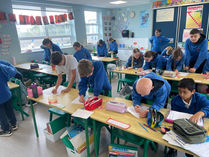 5th class Elm completed a “Musical Chairs” maths activity to kick off maths week. The children each selected an individual 2 digit number on their sheet and when the music stopped they had to go find a new maths sheet and complete the maths task on that person’s page related to their number.