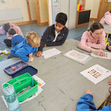 6th class Holly had a great time teaching new words and playing games as Gaeilge with Junior Infants Birch.