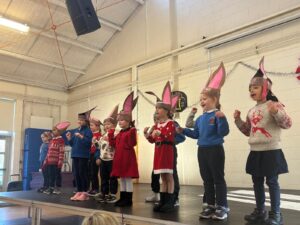 Senior Infants Birch had been practising very hard for our Christmas concert over the past few weeks. On Tuesday, the big day finally arrived and we proudly performed our three Christmas songs for our families, wearing our very own handmade donkey ears.