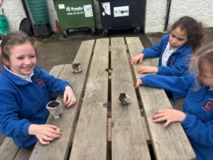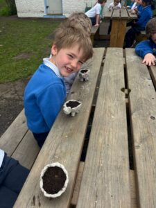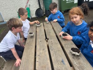 Senior Infants Willow are learning all about gardening and have created plant pots to grow cress. They are exploring the need for water, light, space and food to grow and flourish.