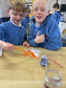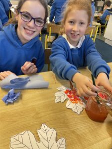 5th Class Elm enjoyed a lovely buddy activity this week with their friends from Senior Infants Willow. The classes worked together on an art activity, creating colourful paper leaves. The 5th class students did a fantastic job helping their buddies with cutting and painting, showing great care, patience and teamwork throughout the session. It was wonderful to see the older students taking on a supportive role and the younger children gaining confidence in their creative skills. A very enjoyable and creative activity for both Elm and Willow classes! 🎨